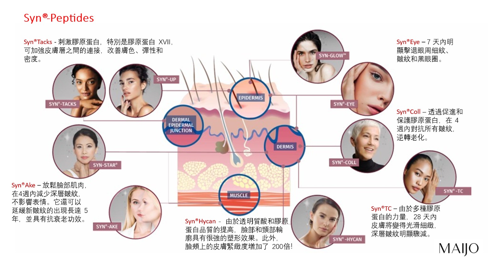 Syn®-Peptides –DSM 專利研究的活胜肽: DSM 一共研發了 9 種專利的活胜肽,Maijo 將其中 6 種融入家居護理產品配方中。